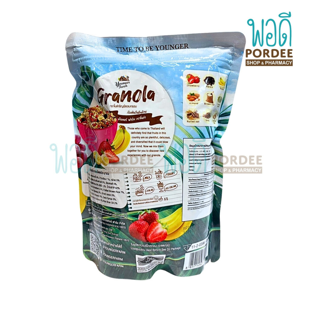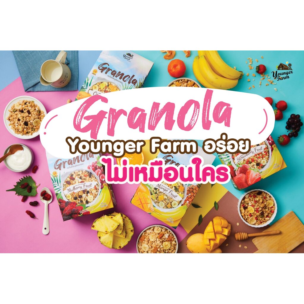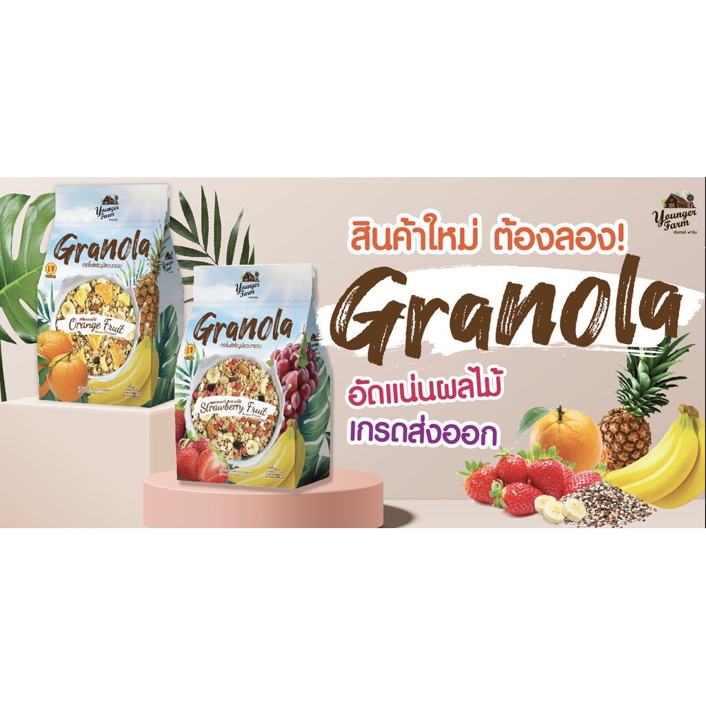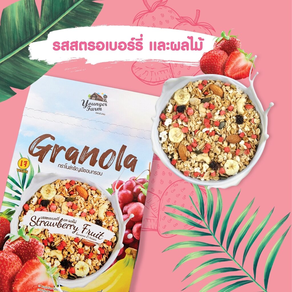GRANOLA STRAWBERRY AND FRUIT รสสตรอเบอร์รี่และผลไม้ 225 g Younger Farm