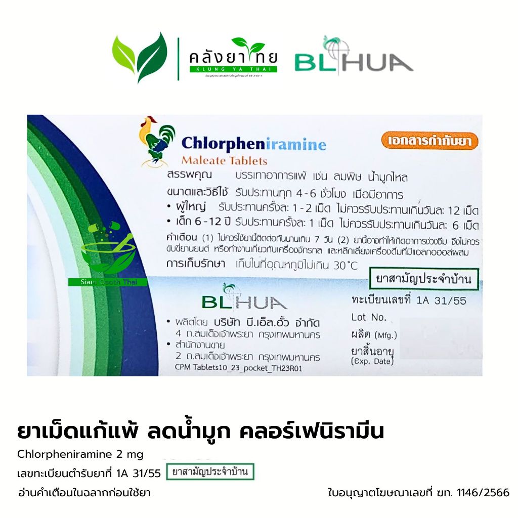 [แผง] ยาแก้แพ้ ลดน้ำมูก คลอร์เฟนิรามีน Chlorpheniramine 2 mg 10 เม็ด ยาแก้แพ้ CPM