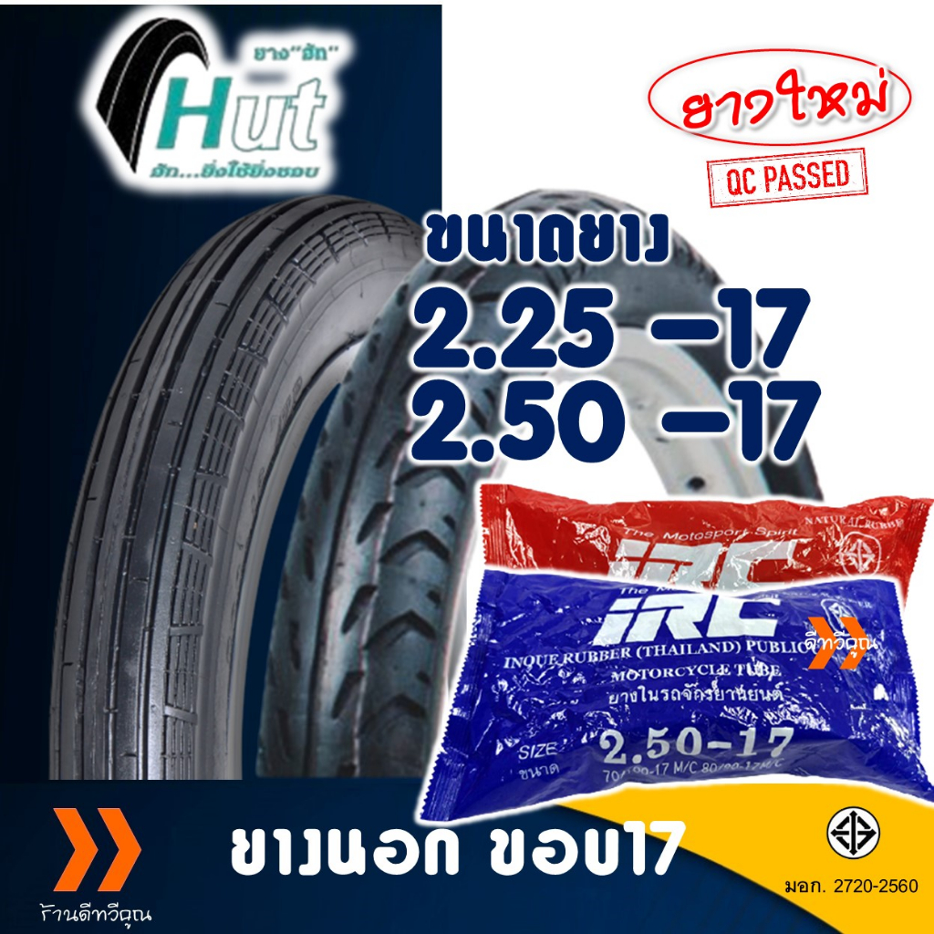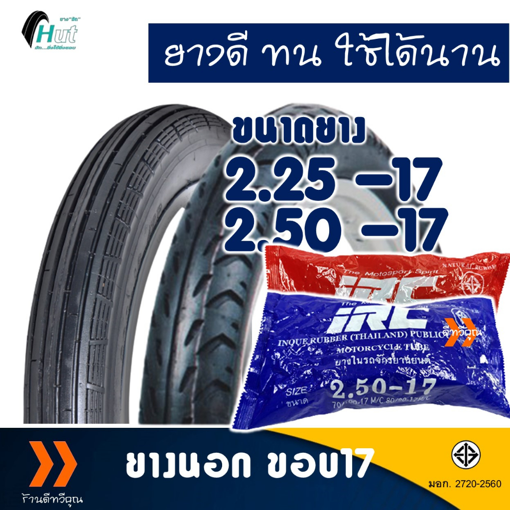 ยางนอก HUT ยางหน้าลายตรง 225-17 , ยางหลังลายลูกศร 250-17 มีตัวเลือกยางใน (IRC)