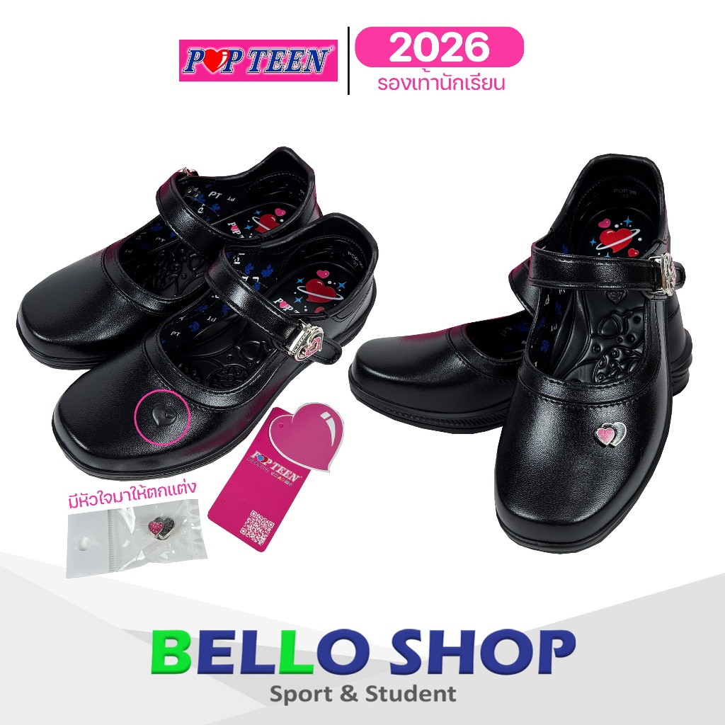 รองเท้านักเรียนหญิง หนังดำ POPTEEN รหัส PT99 ปี 2024 รหัส POP88 ปี 2026