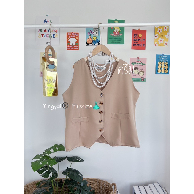 เสื้อกั๊กสาวอวบ ผ้าพื้นเรียบหรู ดูแพงสุดๆ แมทช์ง่ายสไตล์มินิมอล ผ้าบาบี้เนื้อนุ่ม มี4สี คุมโทน ใส่แล้วพรางหุ่น ต้องมี