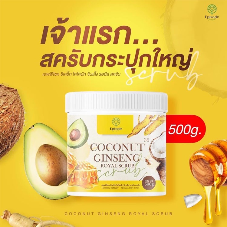 สคับโสมมะพร้าวคอลลาเจน แม่แพท สูตรใหม่ ของแท้ 100% Coconut ginseng