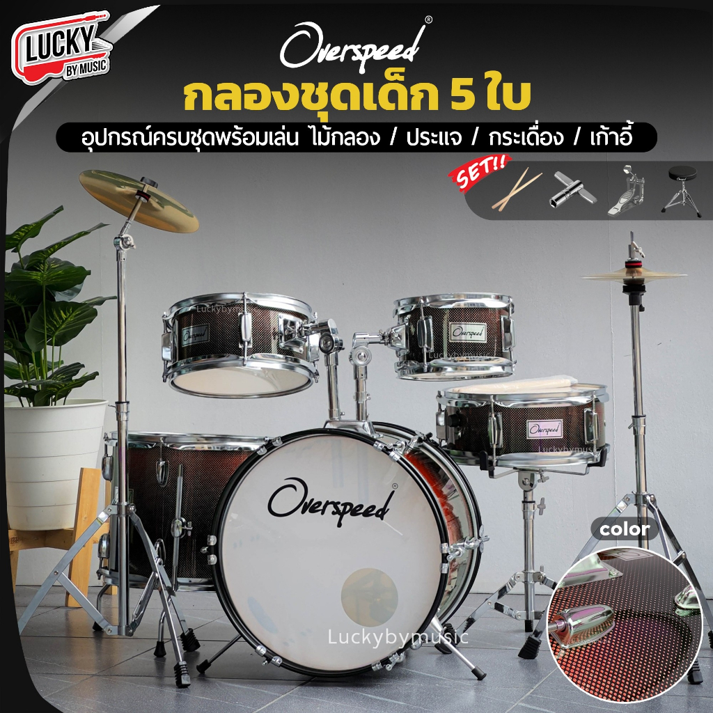 [โค้ดลด1000-📸] กลองชุดเด็ก G-force / Overspeed กลองชุด 5 ใบ กลองชุด พร้อมอุปกรณ์ครบชุด แถมฟรี เก้าอี้กลอง ไม้กลอง ประแจ