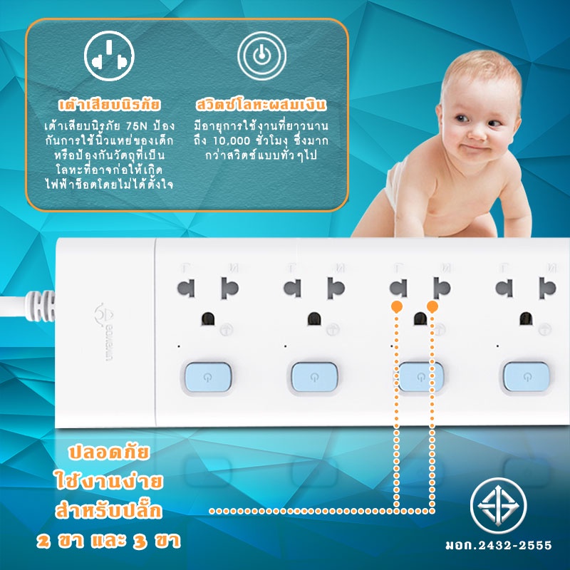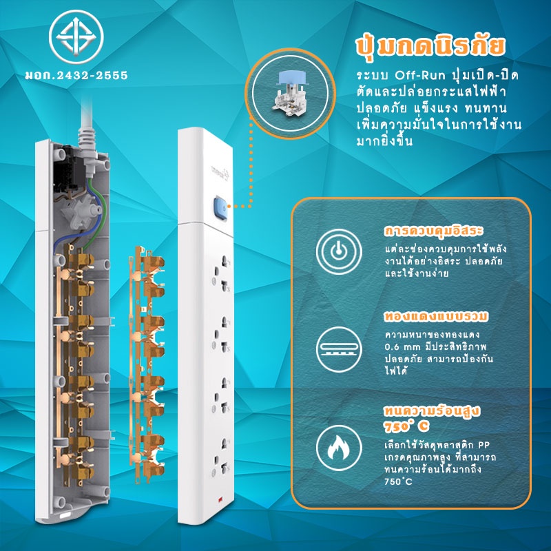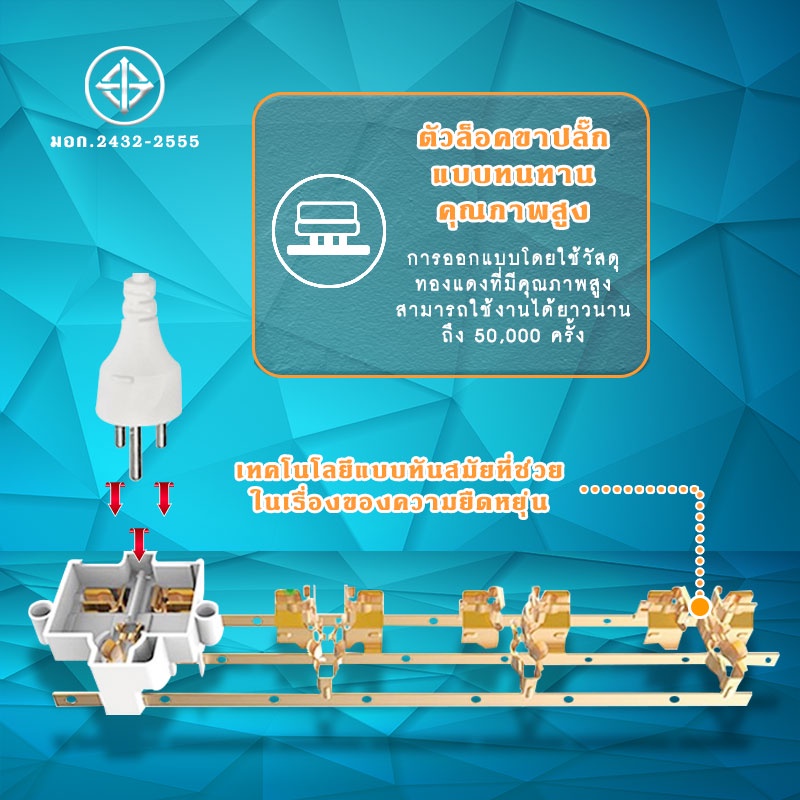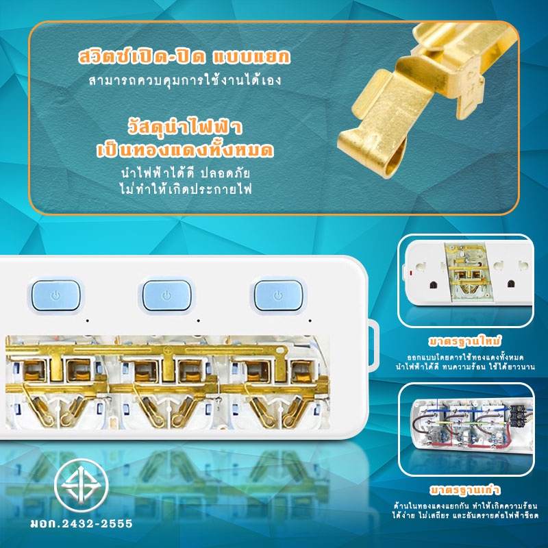 Gongniu ปลั๊กไฟ ปลั๊กพ่วง ปลั๊ก มาตราฐาน มอก. คุณภาพดี ทำจากทองเหลือง กำลังไฟ 10A 2300W-2500W #B-067