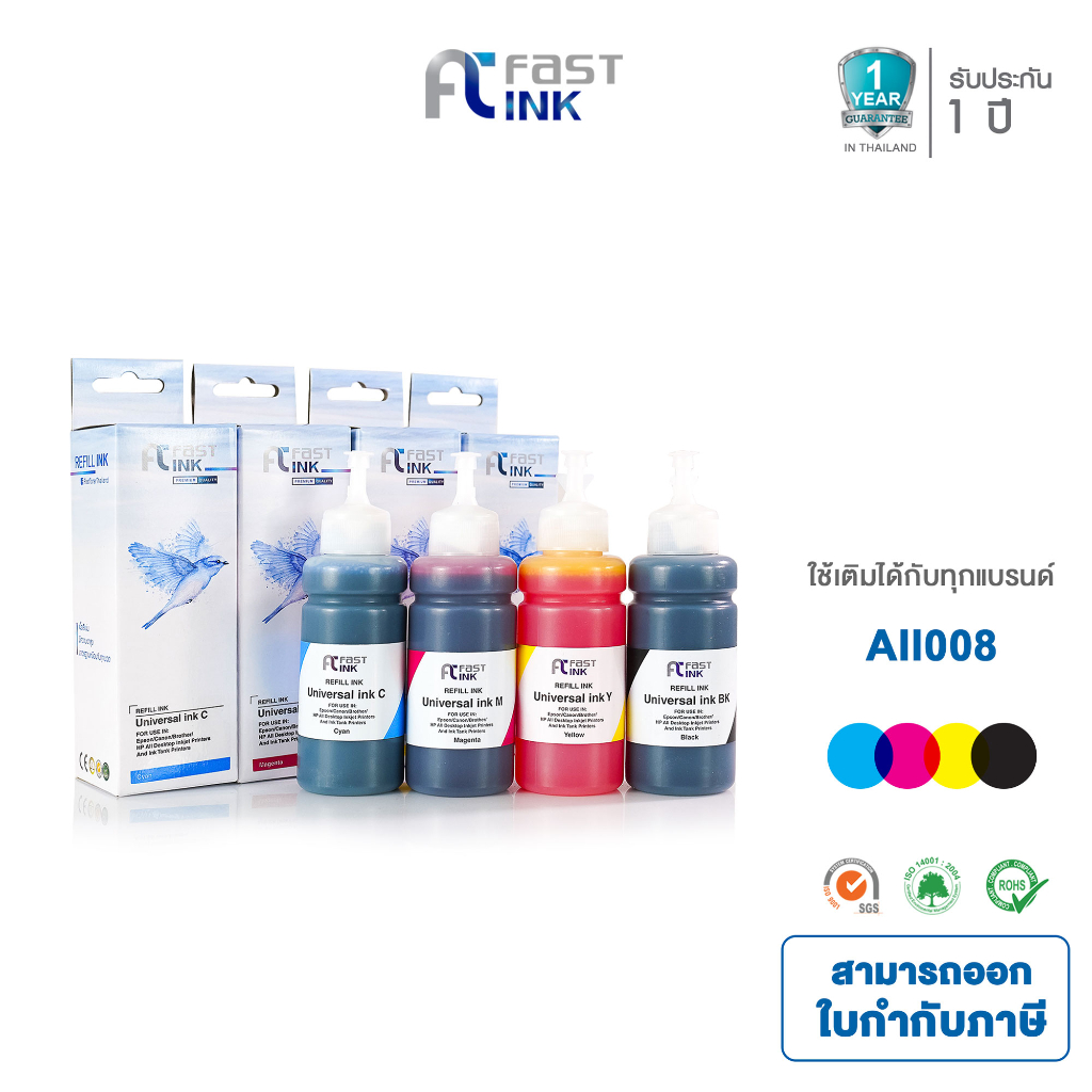 Fast Ink ใช้สำหรับรุ่น หมึกเติม Refill All 008 ใช้สำหรับรุ่นเครื่องปริ้น Epson Hp Cannon Brother