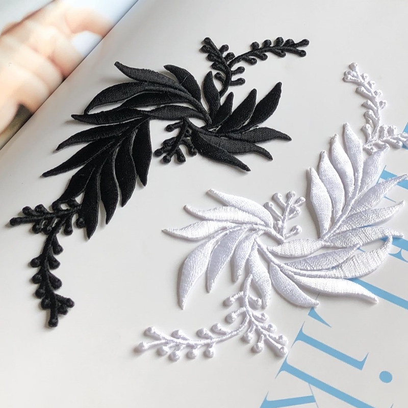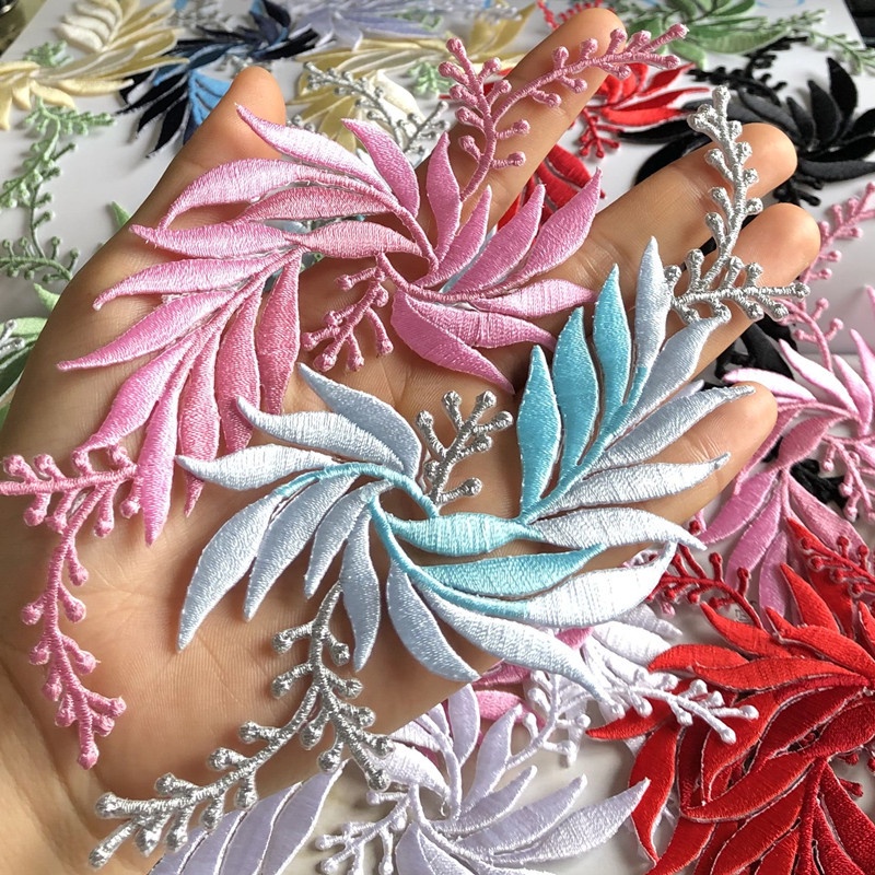 แผ่นแพทช์รีดร้อน ปักลายใบไม้ DIY อุปกรณ์เสริม สําหรับตกแต่งเสื้อผ้า