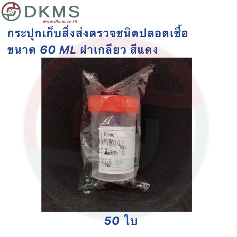กระปุกเก็บสิ่งส่งตรวจชนิดปลอดเชื้อ ขนาด 60 ML ฝาเกลียวสีแดง จำนวน 50 ใบ.