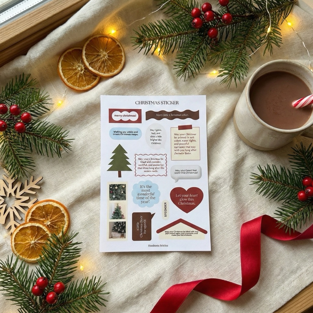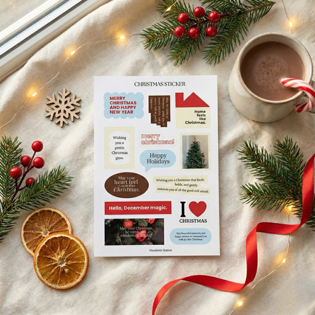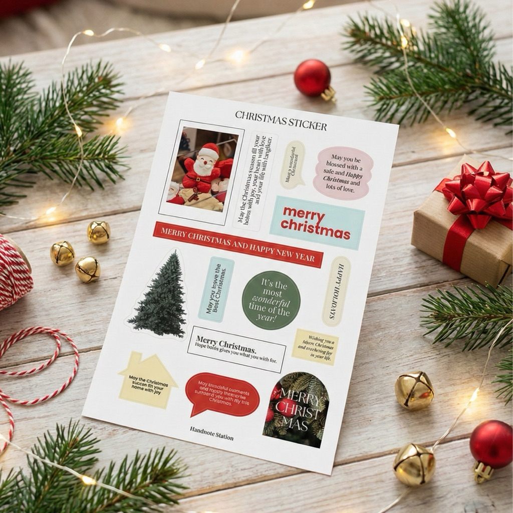 Christmas sticker คริสต์มาสสติกเกอร์ สติกเกอร์คริสต์มาสตกแต่ง คริสต์มาสขนาด A7 A6 สติกเกอร์กันน้ำ Handnote Station