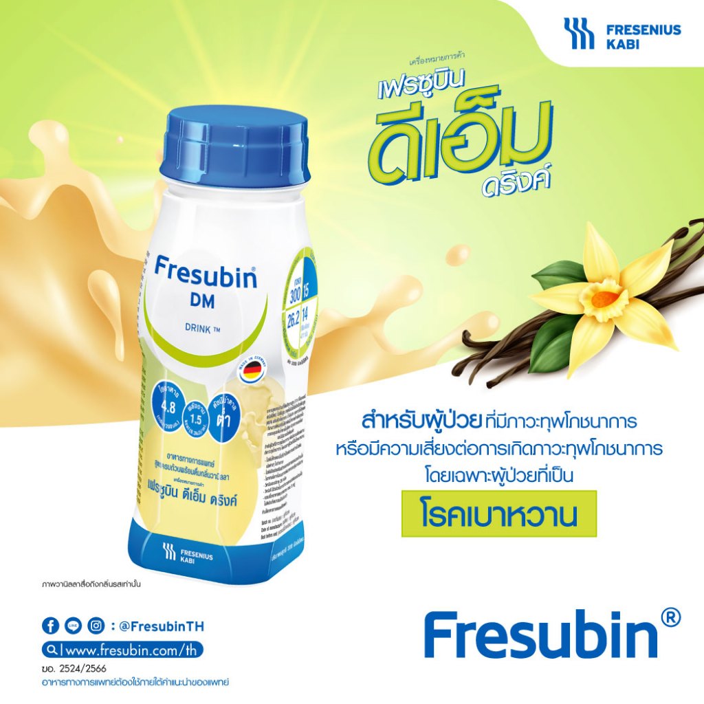 Fresubin DM 6 แพ็ค เฟรซูบิน ดีเอ็ม กลิ่นวานิลลา 200 ml x 24 ขวด สำหรับผู้ป่วยเบาหวาน [EXP.10/2026]