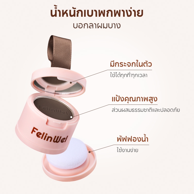 FelinWel - แป้งเติมเงาผม พร้อมกระจกและพัฟในตัว แป้งเติมเงาผมได้ในทันที แป้งเงาผม