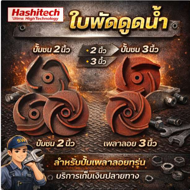 ใบพัดดูดน้ำ ปั๊มชน ปั๊มเพลาลอย 2,3 นิ้ว ปั้มน้ำ เครื่องสูบน้ำ ปั๊มน้ำอลูมิเนียม ฮาชิเทค