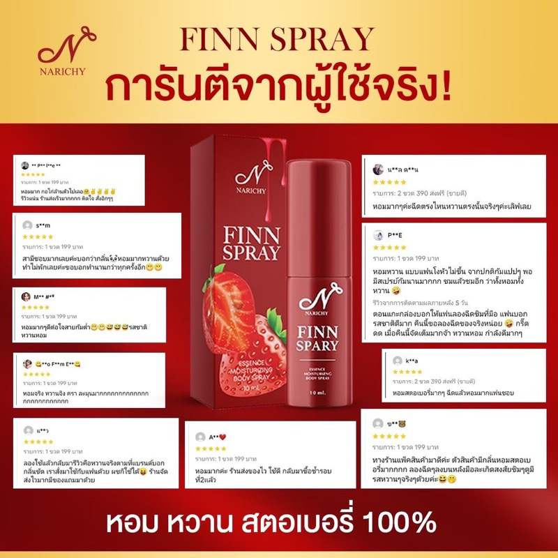 ปิดชื่อสินค้าให้ | Narichy Finn Spray สเปรย์ฟิน ฉีดน้องสาว กลิ่นสตอเบอรี่ กลิ่นวนิลา | Finn Soap สบู่ฟิน ล้างน้องสาว
