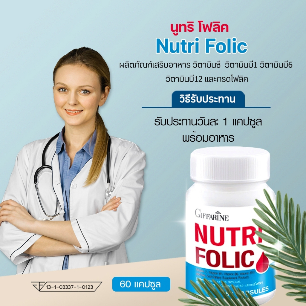 โฟลิค กิฟฟารีน นูทริโฟลิค โฟลิก เสริมธาตุเหล็ก FOLIC โฟลิคสูง บำรุงเลือด สร้างเซลล์เม็ดเลือดเเดง