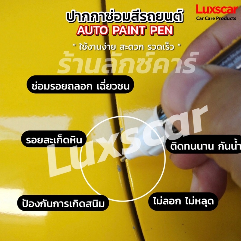 ปากกาแต้มสีรถ ซ่อมสีรถ สีเหลือง Yellow Auto paint pen มีทุกสี พร้อมส่ง | Luxscar