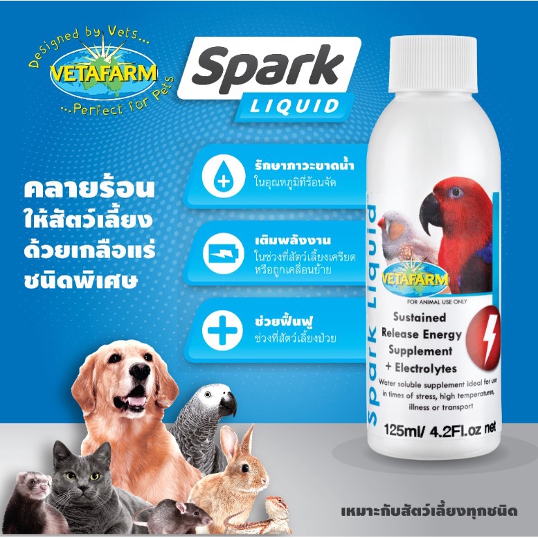 Vetafarm Spark Liquid เกลือแร่ รักษาภาวะขาดน้ำ ฟื้นฟูยามป่วย ภาวะเครียด (แบ่ง 30ML)