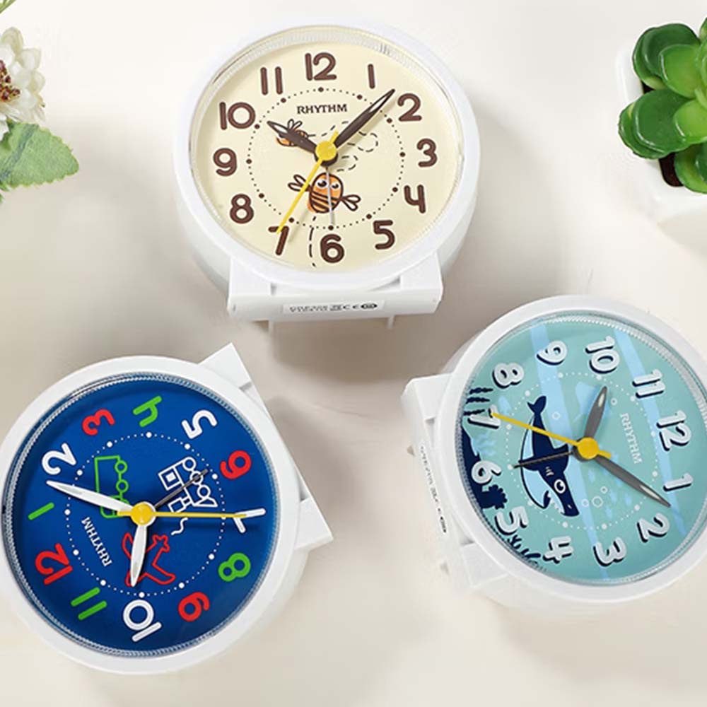 นาฬิกาตั้งโต๊ะ RHYTHM ลายการ์ตูน นาฬิกาเด็ก ตั้งเลื่อนเวลาปลุกได้ เข็มเดินเงียบ ฐานกว้าง 9.3 ซม.-CRE306NR77