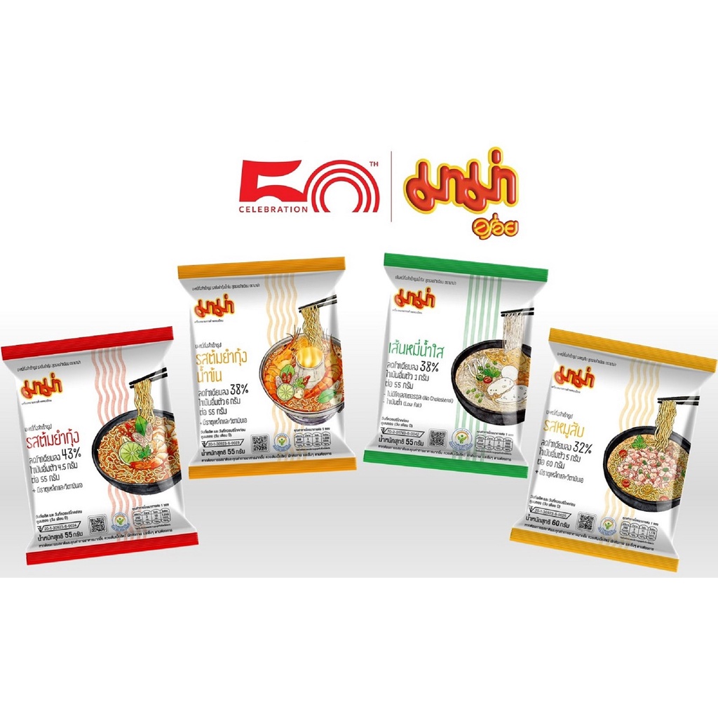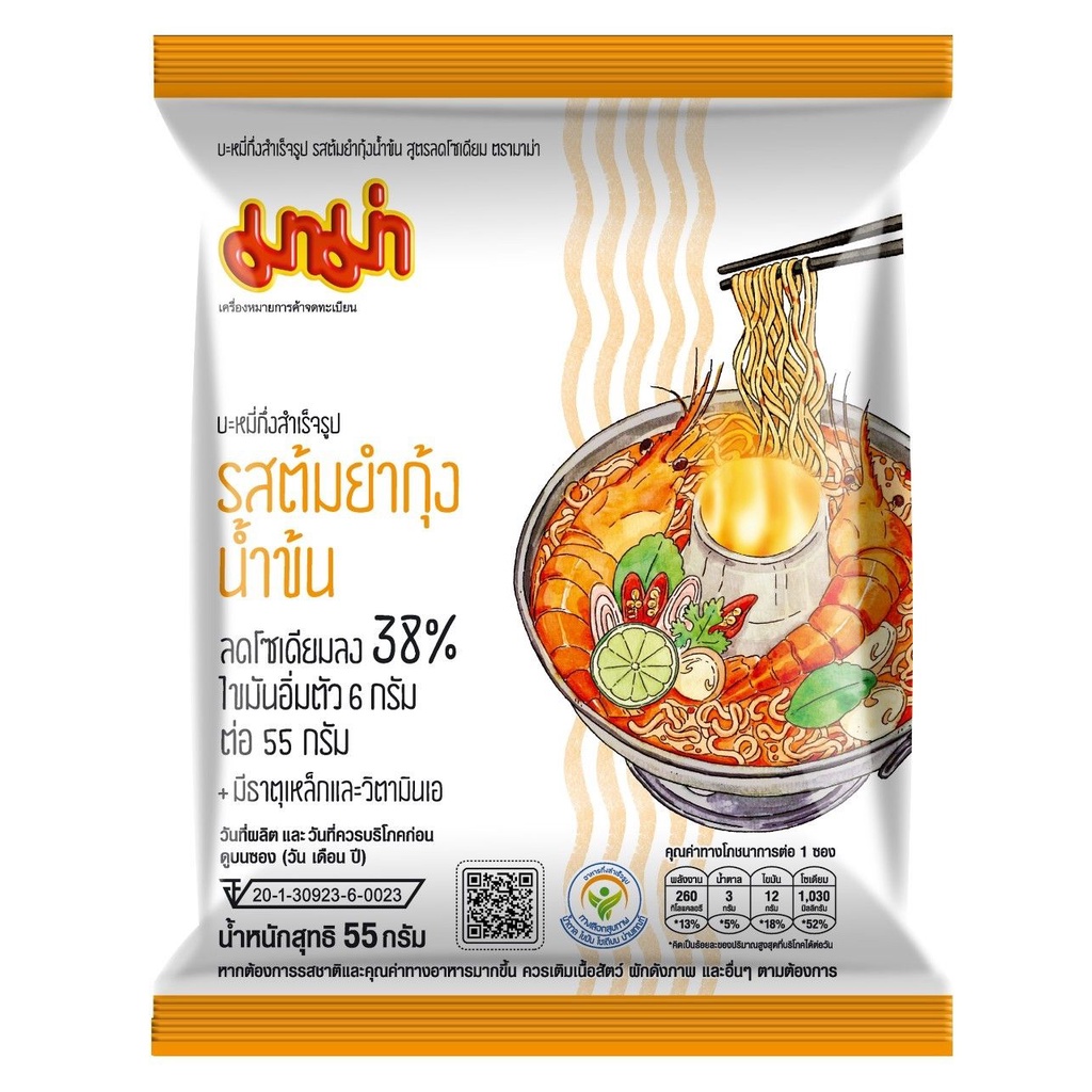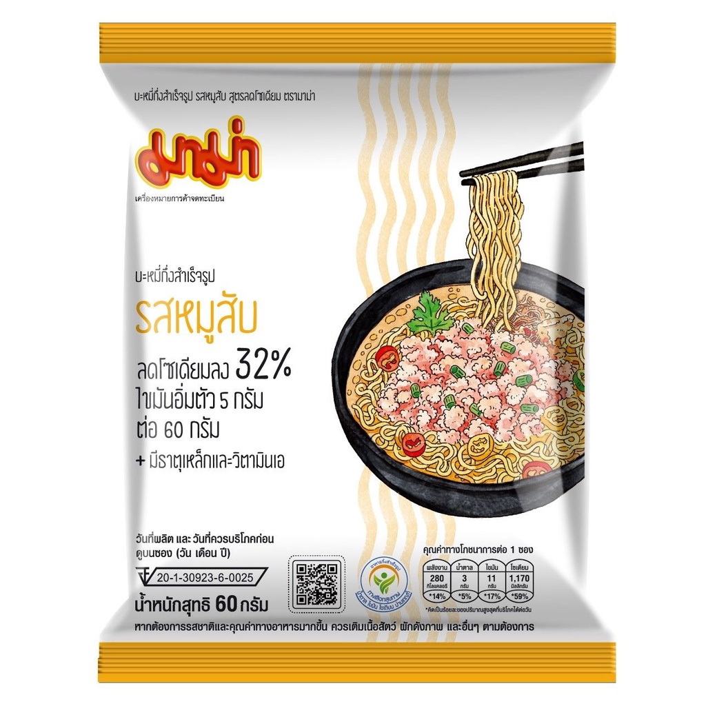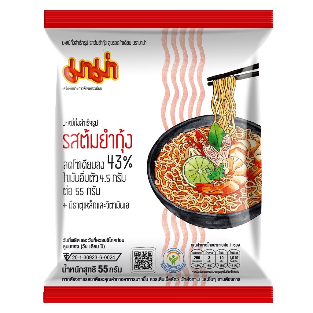 มาม่า บะหมี่กึ่งสำเร็จรูป สูตรลดโซเดียม ซอง 55-60 กรัม กล่องx30ซอง Mama