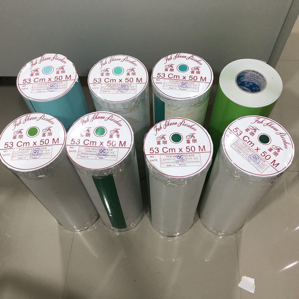 สติ๊กเกอร์ฟู่ซุ่น สติกเกอร์พีวีซี สีน้ำเงิน ฟ้า ม่วง งานไดคัท งานป้าย กว้าง 53 เซนติเมตร ยาว 1 เมตร