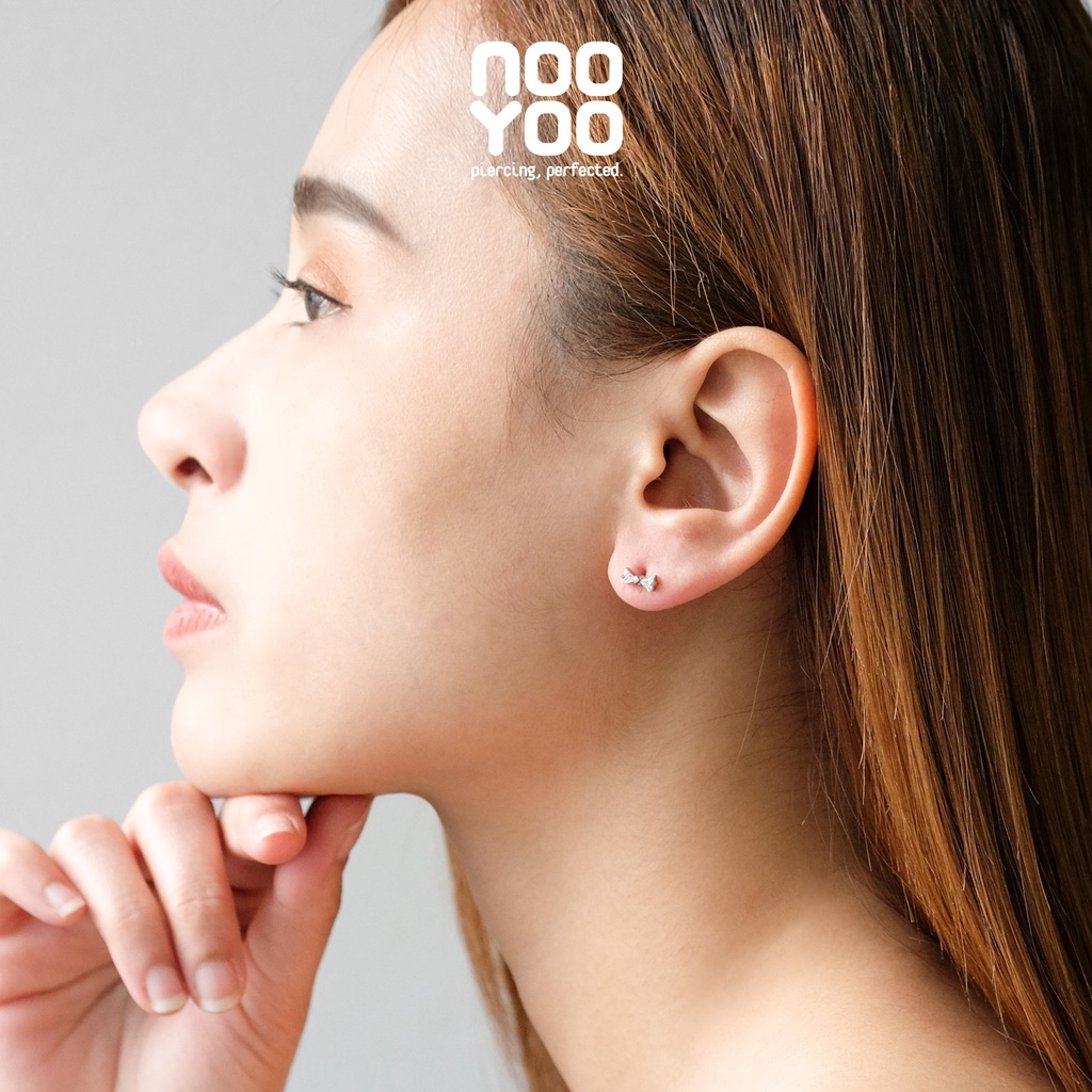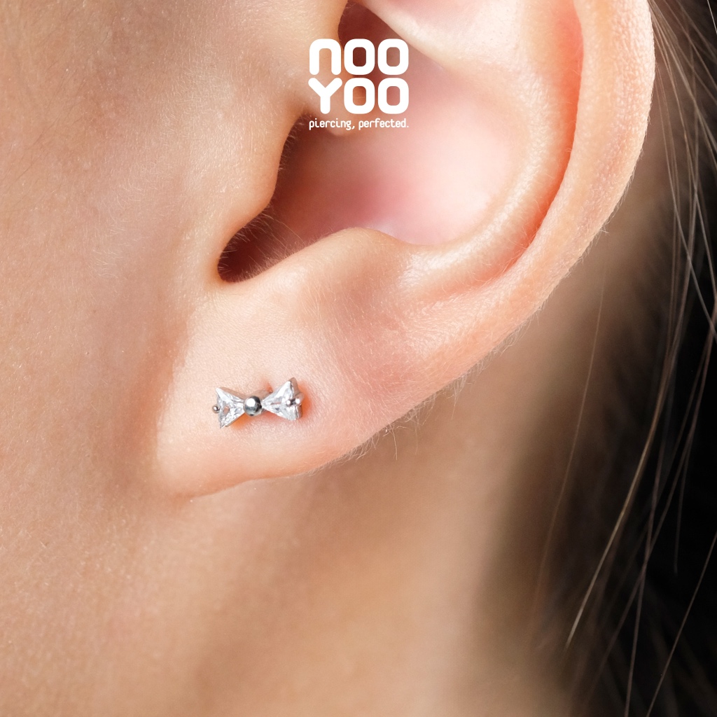 NooYoo ต่างหูสำหรับผิวแพ้ง่าย SLIM BOW Crystal Surgical Steel