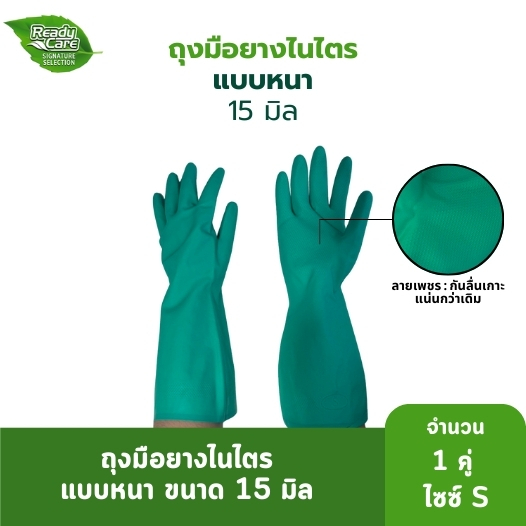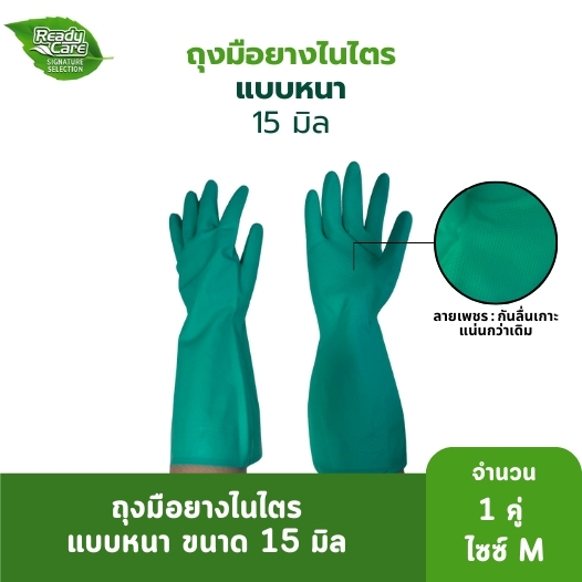 Readycare ถุงมือแม่บ้าน/อุตสาหกรรม ถุงมือไนไตร จำนวน 1 คู่ สีเขียว ขนาด 15 มิล กันลื่น