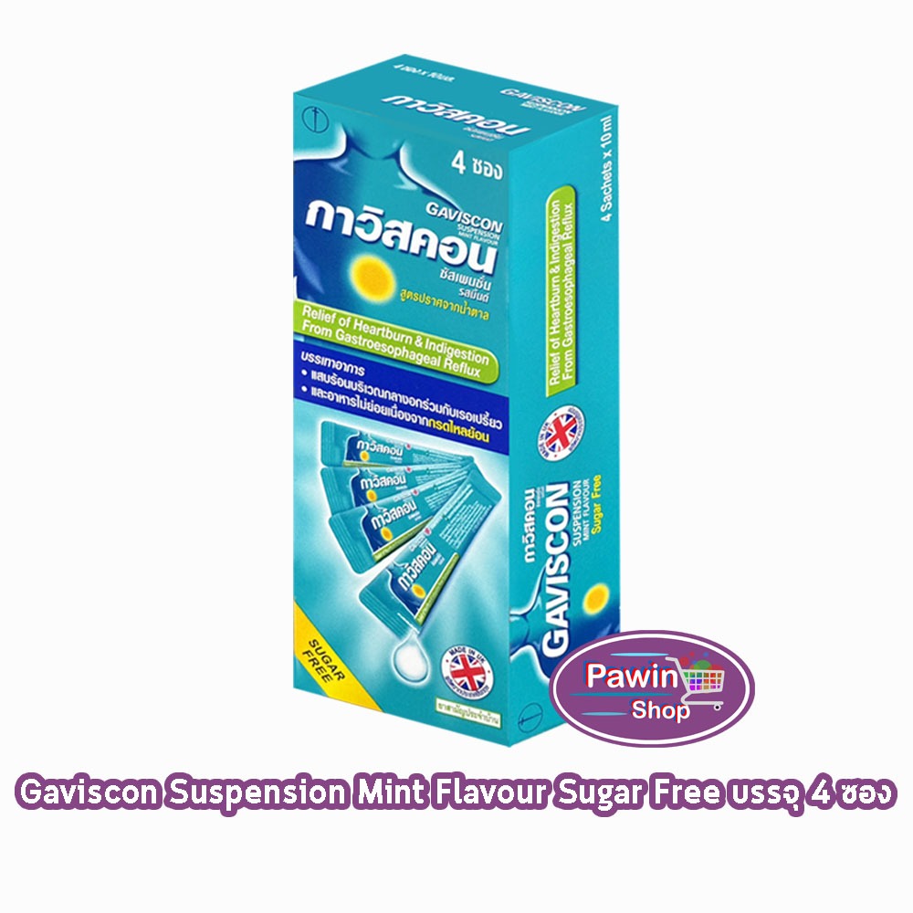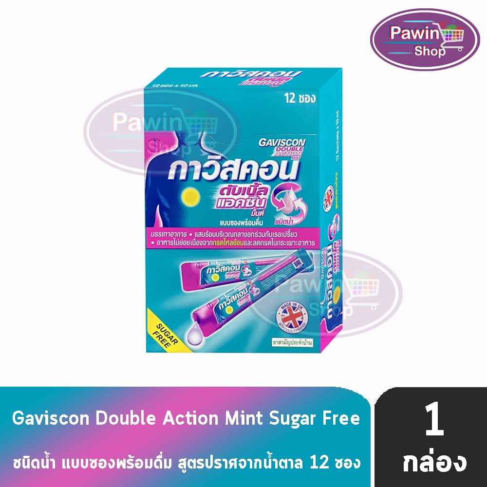 Gaviscon Suspension/Double Action Mint Flavour 10ml. กาวิสคอน รสมิ้นต์ 12 ซอง[1กล่อง] JJ 211X กรดไหล