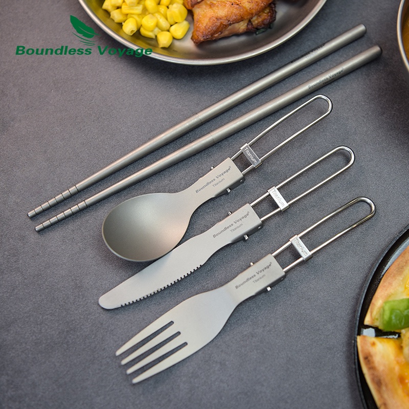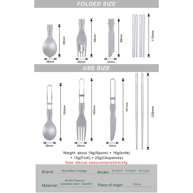 ชุดช้อนส้อม ตะเกียบ ไทเทเนียม น้ําหนักเบา สําหรับตั้งแคมป์ Ti1121T-23T