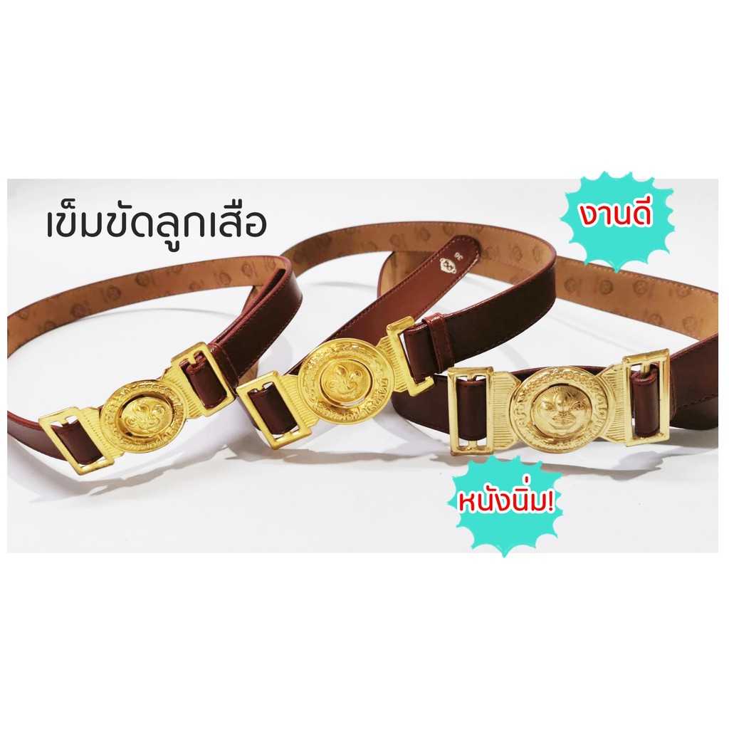 หัวลูกเสือ-สายสีน้ำตาล หนังนิ่ม เข็มขัดนักเรียน เข็มขัดหัวลูกเสือ ยาว28-60นิ้ว