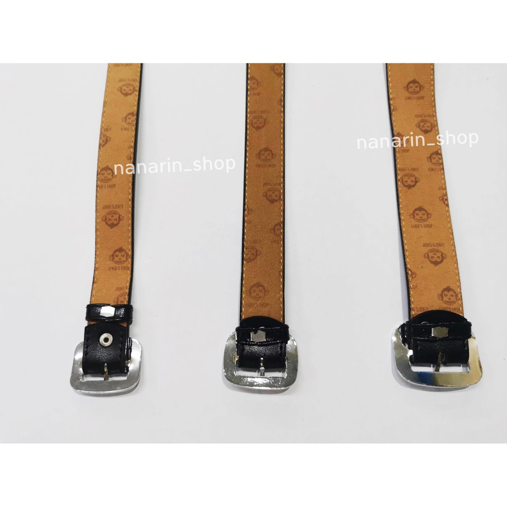 เข็มขัดนักเรียนชาย หัวเหลี่ยมเงิน-สายสีดำ(หนังนิ่ม)ตราลิง ความยาว 28-60 นิ้ว ระดับประถม-มัธยม