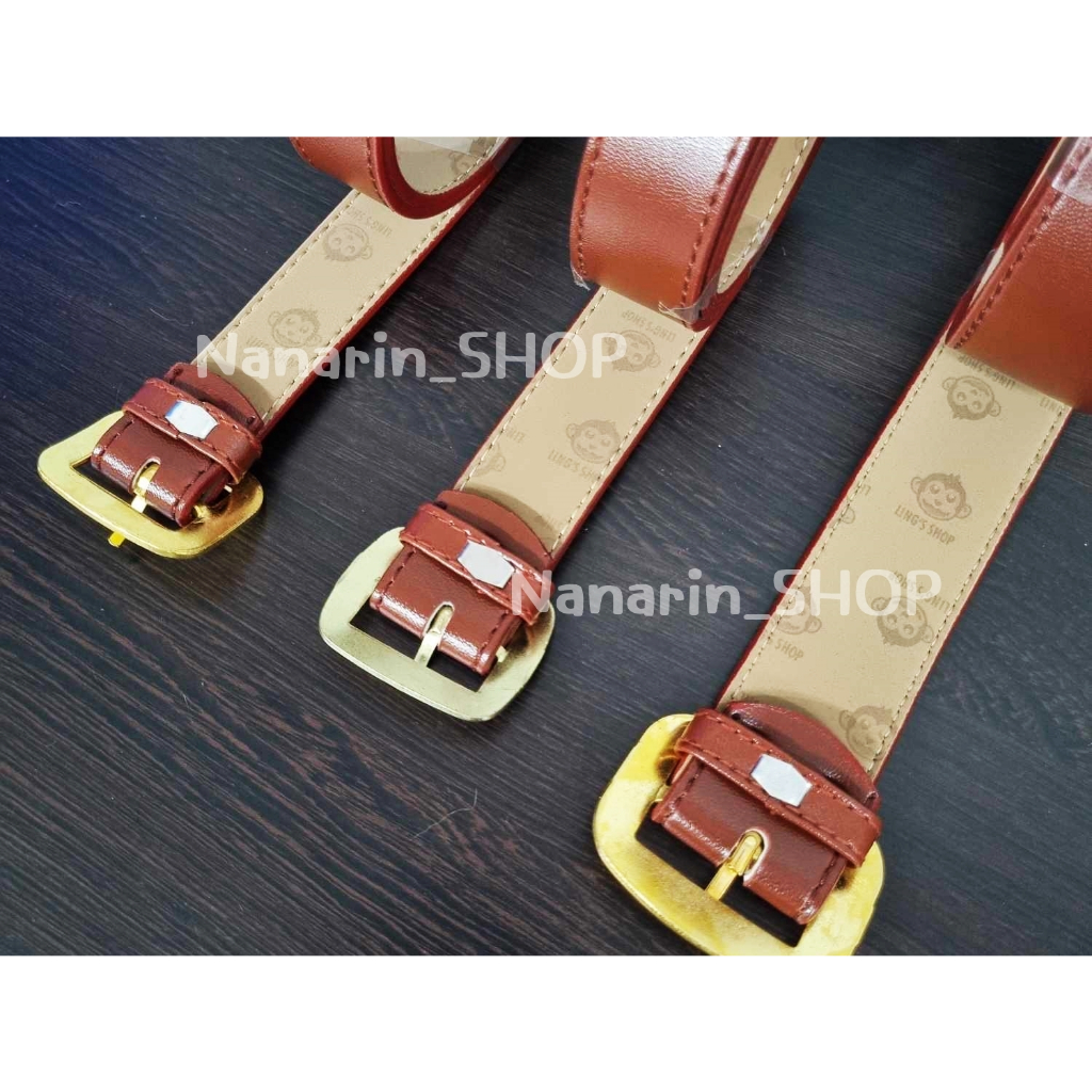 เข็มขัดนักเรียนชาย หัวเหลี่ยมทอง-สายสีน้ำตาล(หนังนิ่ม)ตราลิง ระดับประถม-มัธยม ยาว28-60นิ้ว