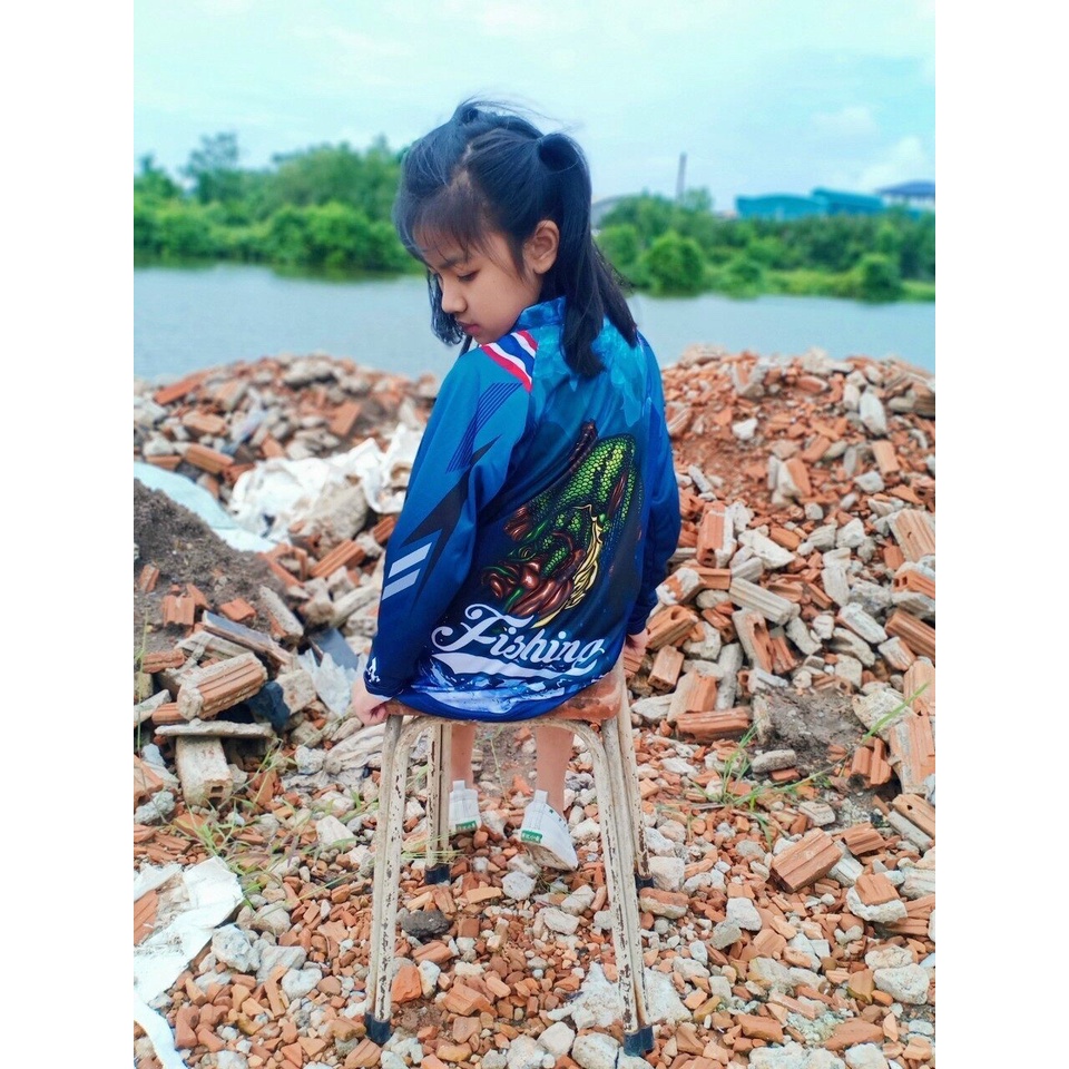THAI FISHING เสื้อตกปลาเด็กกีฬากลางแจ้งJK THAILANDสีน้ำเงินป้องกันUV80-90%สีไม่ตกแห้งเร็วใส่ได้