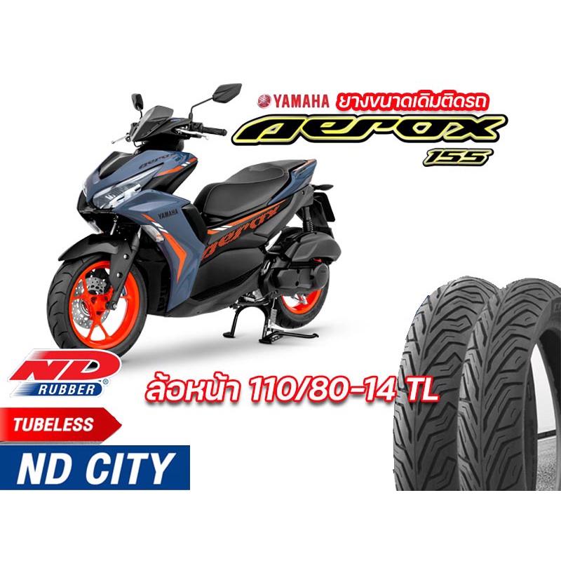 ยางใหม่ ยางนอก หน้า-หลัง (แพ็คคู่) YAMAHA Aerox155 ND City 110/80-14TL , 140/70-14 TL ยางจุ๊บเลส ยางผลิตใหม่ จัดส่งเร็ว