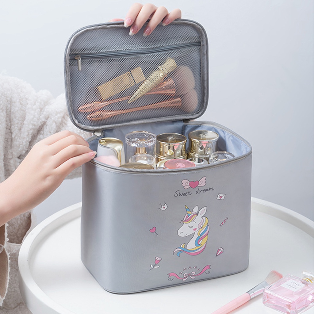 กระเป๋าเครื่องสําอาง แบบพกพา สามารถพับได้ สไตล์เกาหลี สําหรับเดินทาง