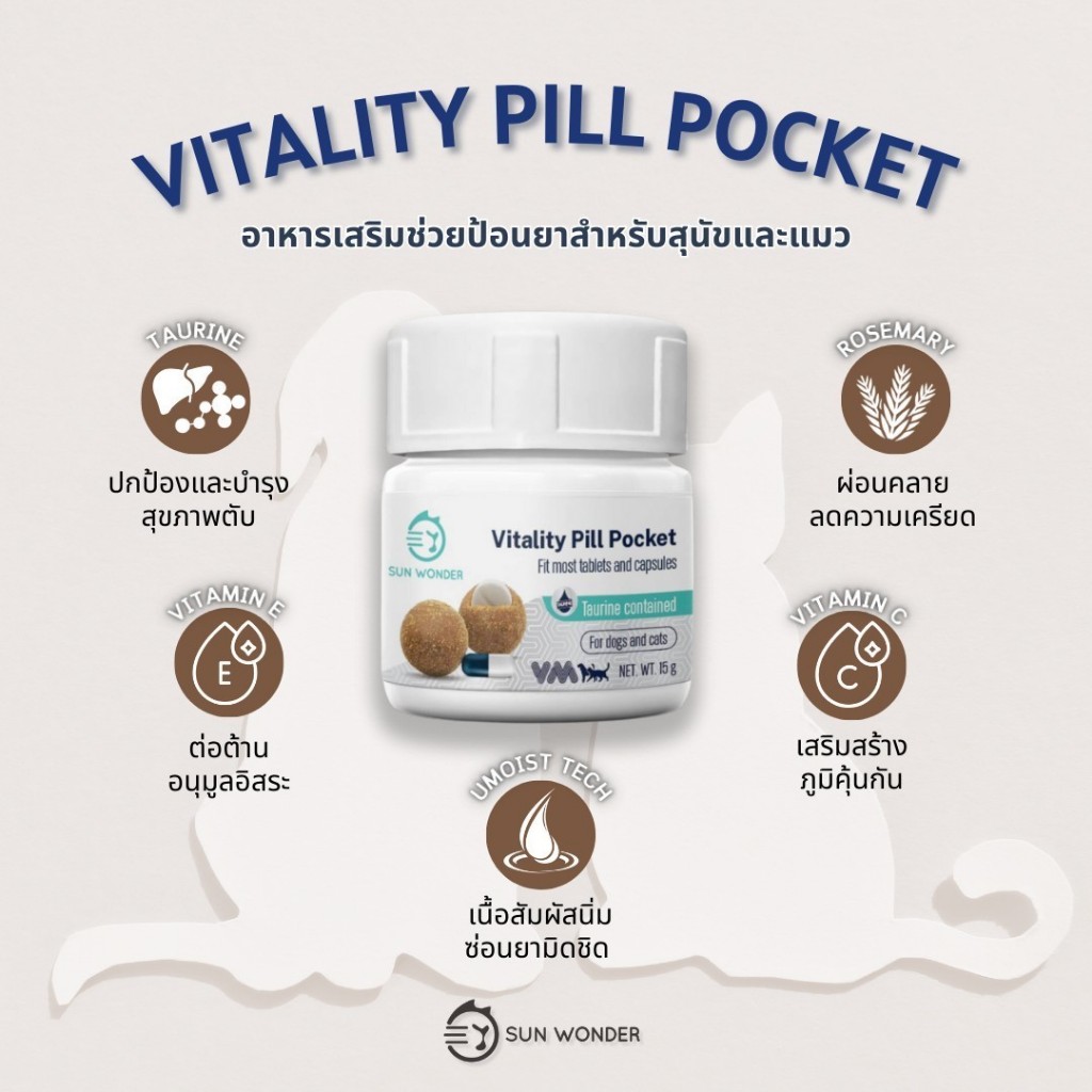 Vitality Pill Pocket ตัวช่วยป้อนยา ซ่อนยาในรูปแบบขนม สำหรับหมา แมว by Sun Wonder รสตับไก่ไฮโดรไลซ์