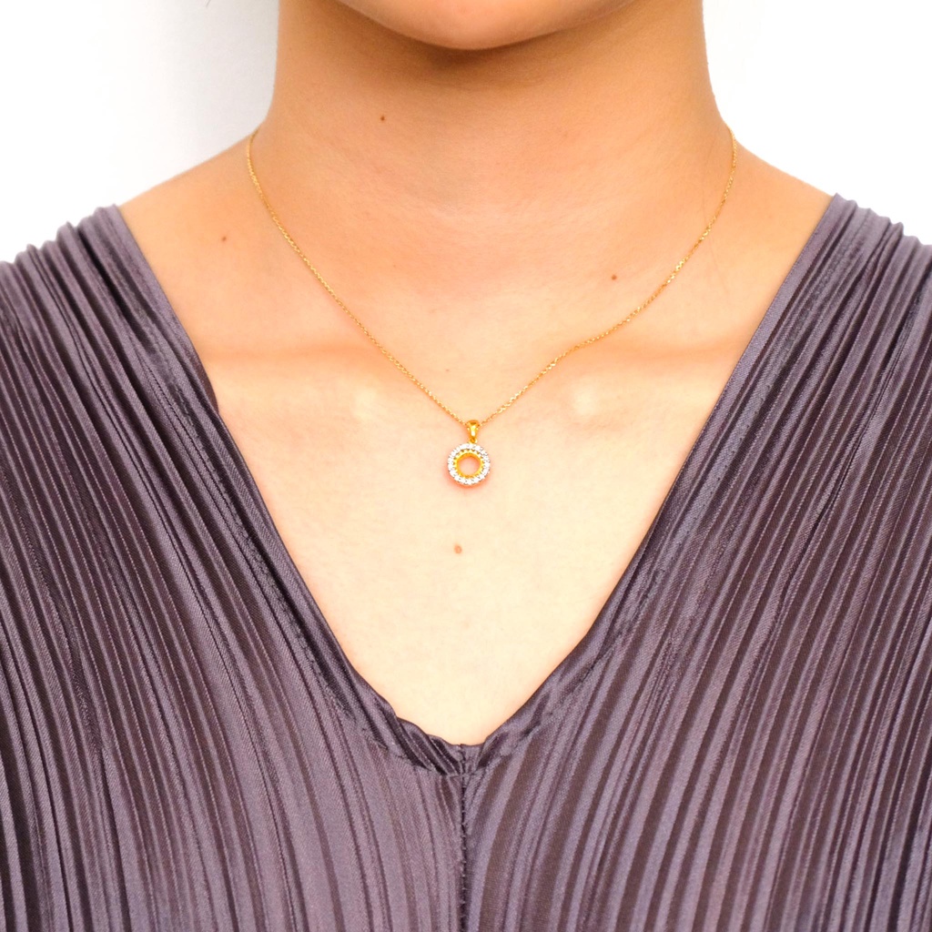 Happy Jewelry จี้วงกลม เพชรรอบ จี้เพชรแท้ ตัวเรือนทองแท้ 37.5% (9K) PD174 [เฉพาะจี้]