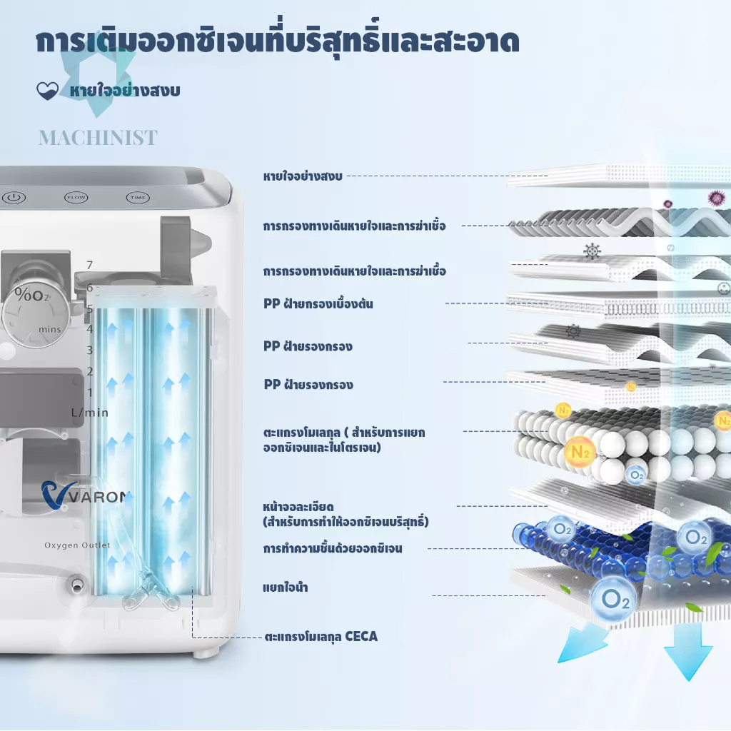 【COD + การจัดส่ง 2 วัน】 เครื่องผลิตออกซิเจน 1-7L/min เครื่องผลิตออกซิเจนแบบพกพาแบบปรับได้สำหรับใช้ในบ้านและในการเดินทาง