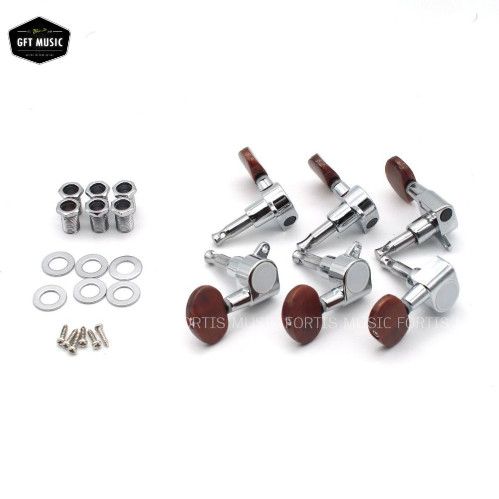 Fortis ลูกบิดกีต้าร์โปร่ง อย่างดี มือจับลายไม้ แถวคู่น็อตเฉียง 1 รู รุ่น LS-815 Acoustic guitar machine heads