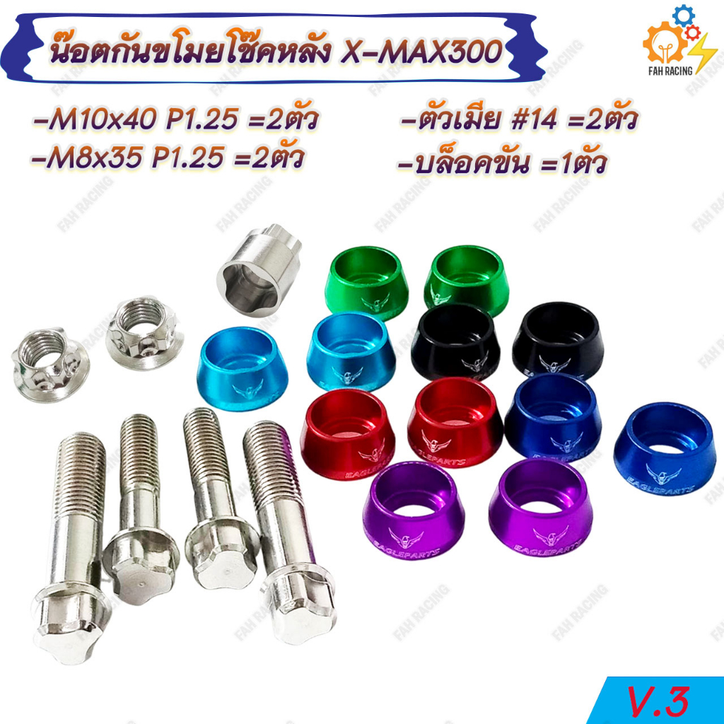 น๊อต กันขโมย โช๊คหลัง สแตนเลส+อลูมิเนียม สำหรับ X-MAX V.3 (1ชุด)
