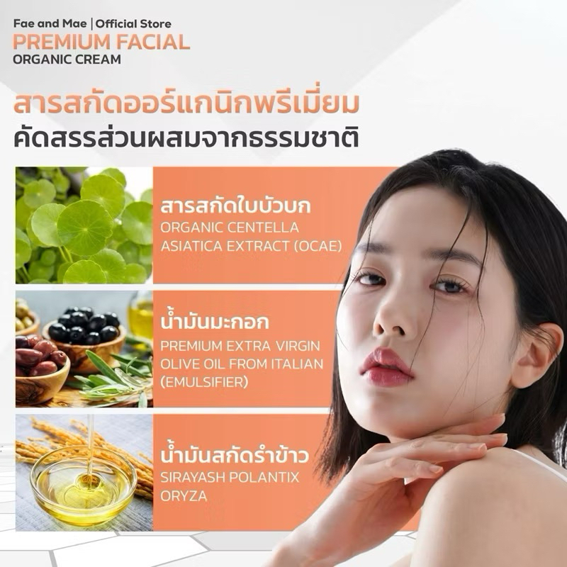 FAE AND MAE PREMIUM FACIAL ORGANIC CREAM เฟ แอนด์ เม พรีเมี่ยม เฟเชียล ออร์แกนิก ครีม ปริมาน 50 ml (P)