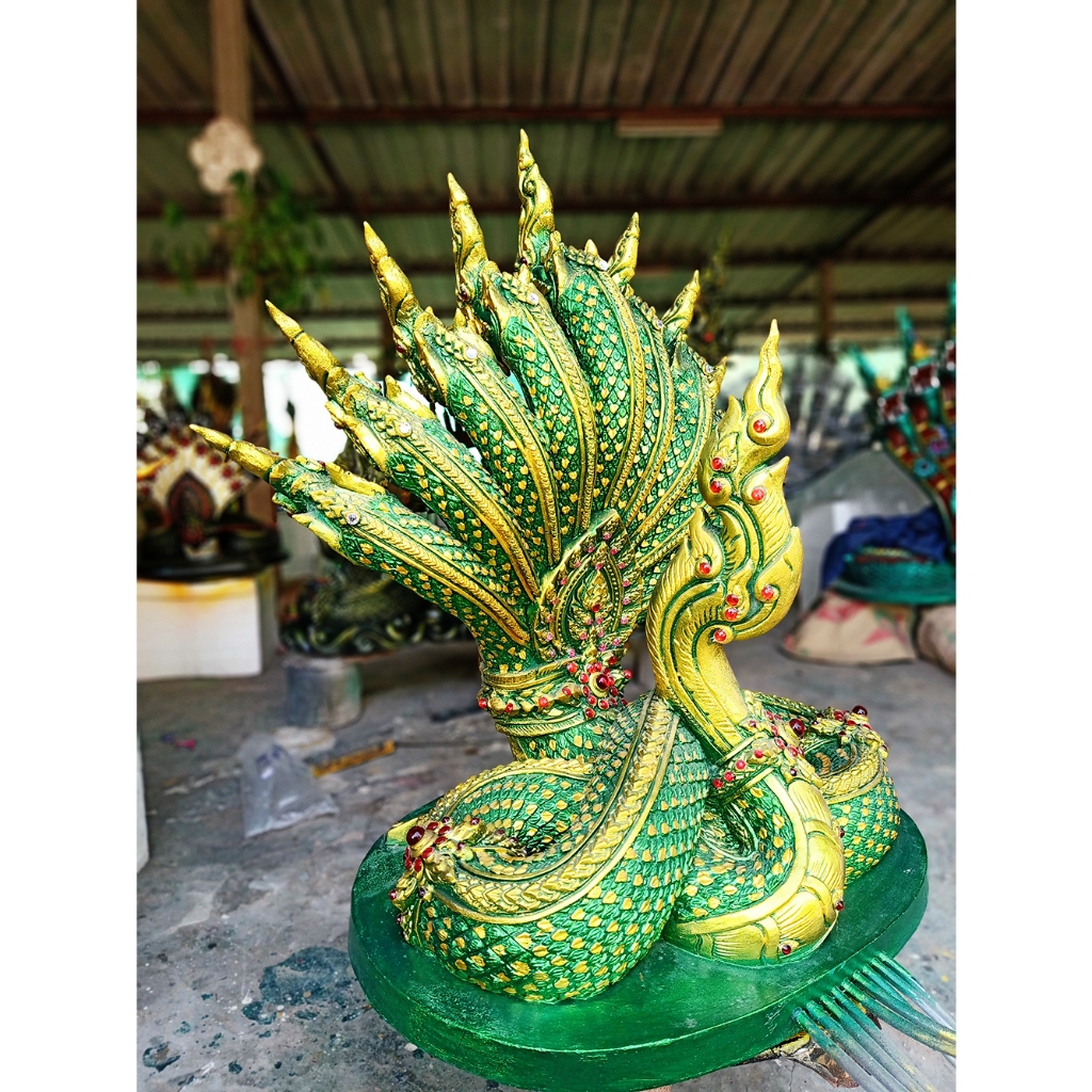 รูปปั้นพญานาค พญานาค 9 เศียร พญานาคพ่นน้ำ 9 เศียร พญานาค9เศียร พญานาคสีเขียว K-250 (สูง 60 ซม.)