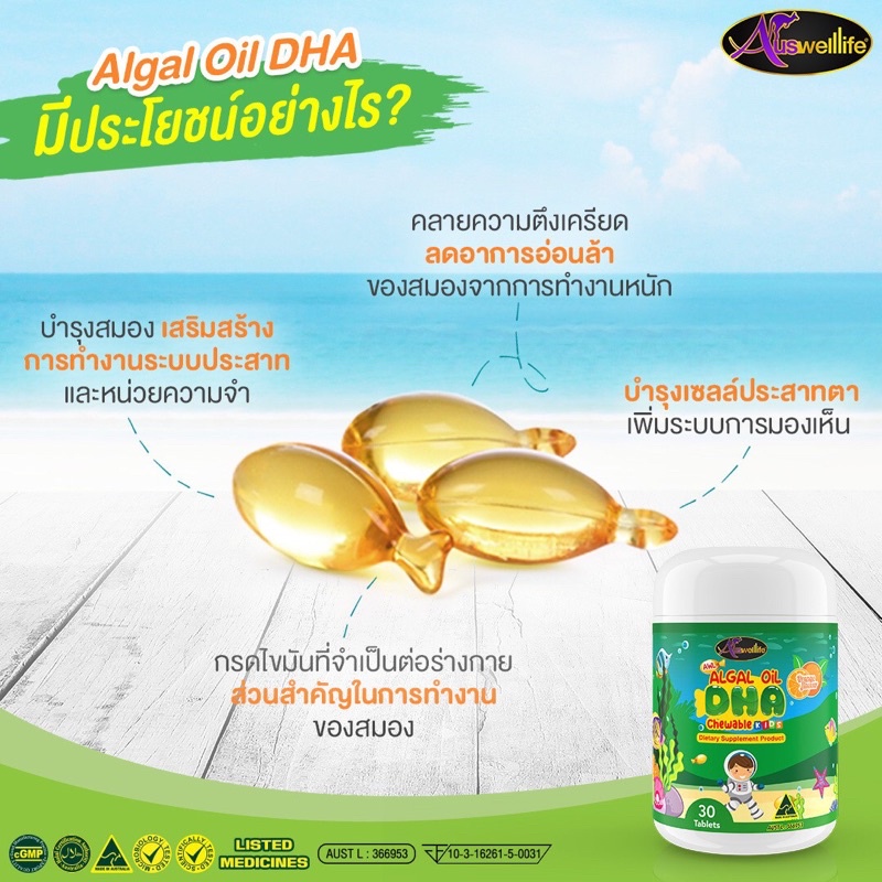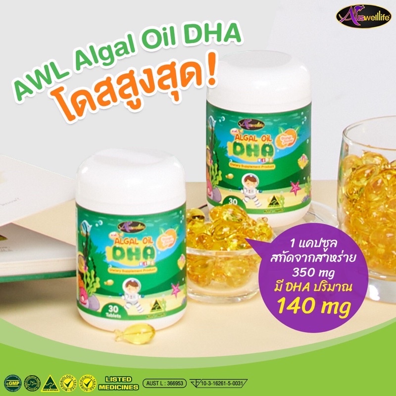 2ฟรี1❗️DHA สำหรับเด็ก Auswelllife Algal Oil DHA 60เม็ด โดสสูง350mg วิตามินเด็ก บำรุงสมอง เพิ่มความจำ