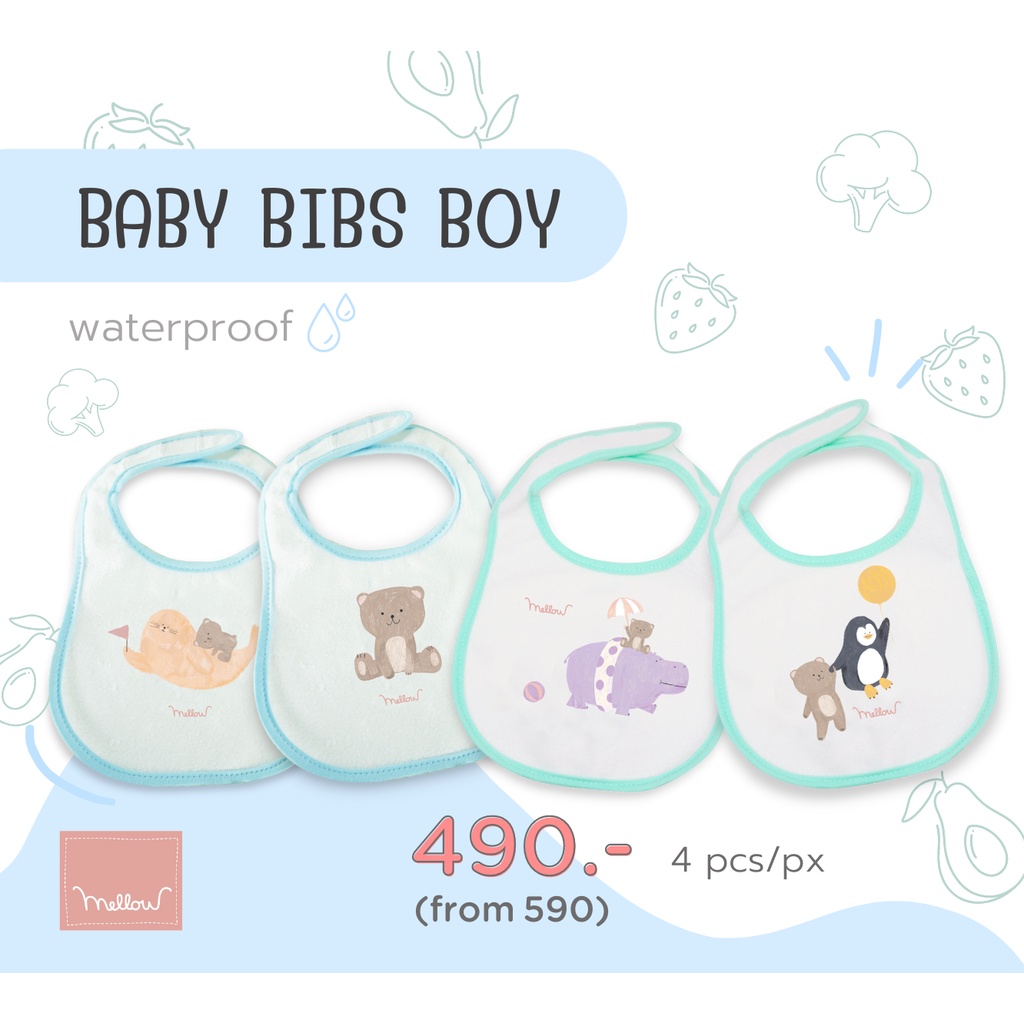 Mellow Baby Bib with velcro ผ้ากันเปื้อน ผ้ากันน้ำลาย กันน้ำ100%