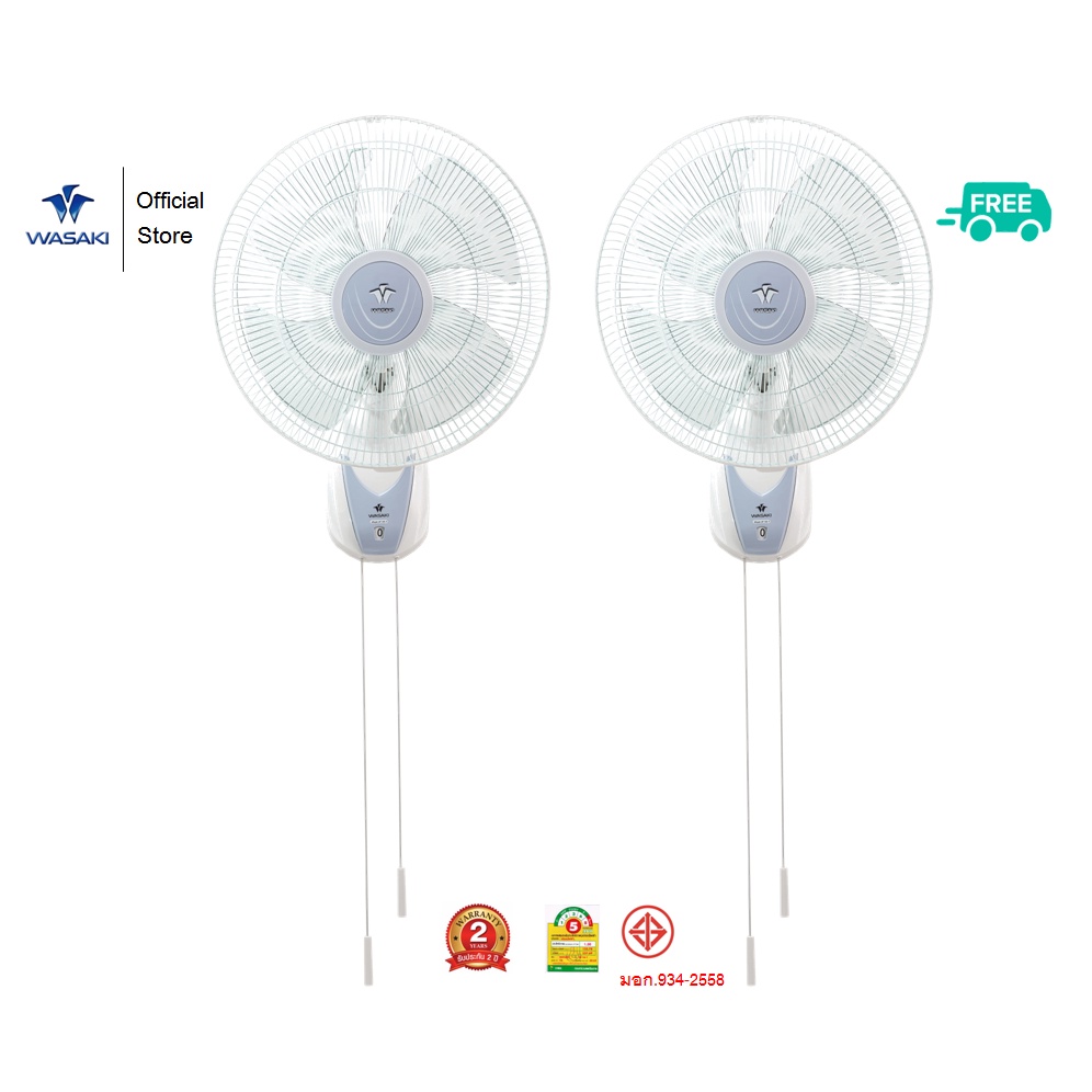 WASAKI - พัดลมติดผนัง 16" (ซื้อ 1 แถม 1) - สีขาว Wall Fan