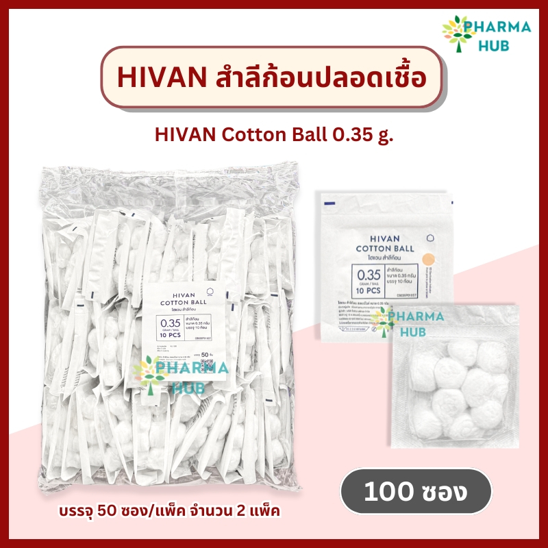 Hivan สำลีก้อนปลอดเชื้อ 10 ก้อน x 100 ซอง (0.35 กรัม/ก้อน) สำลีก้อนสเตอร์ไรด์ sterile cotton ball