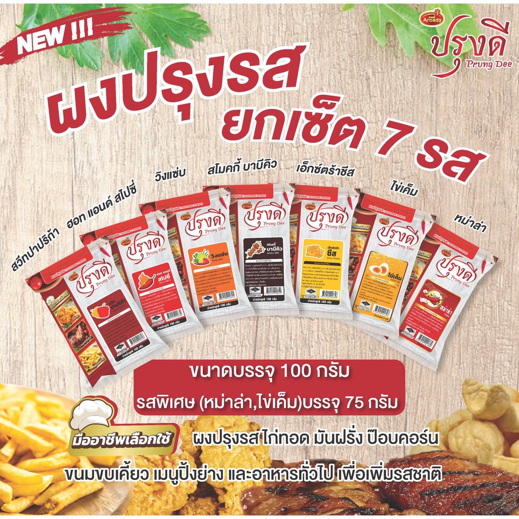 Prungdee Seasoning Powder ปรุงดี ผงปรุงรส ผงเขย่า 9 รส ขนาด 100 ก. (ยกเว้น หม่าล่าขนาด 75 กรัม)