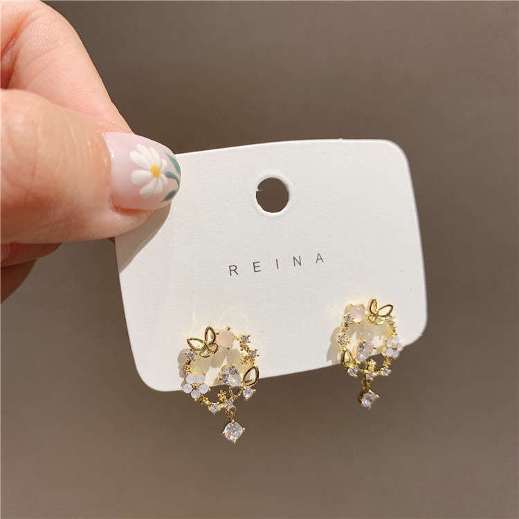 [YY] ใหม่ ต่างหูเข็มเงิน S925 ทรงกลม รูปผีเสื้อ ดอกไม้ ไฮเอนด์ ขนาดเล็ก สไตล์เกาหลี เข้ากับทุกชุด