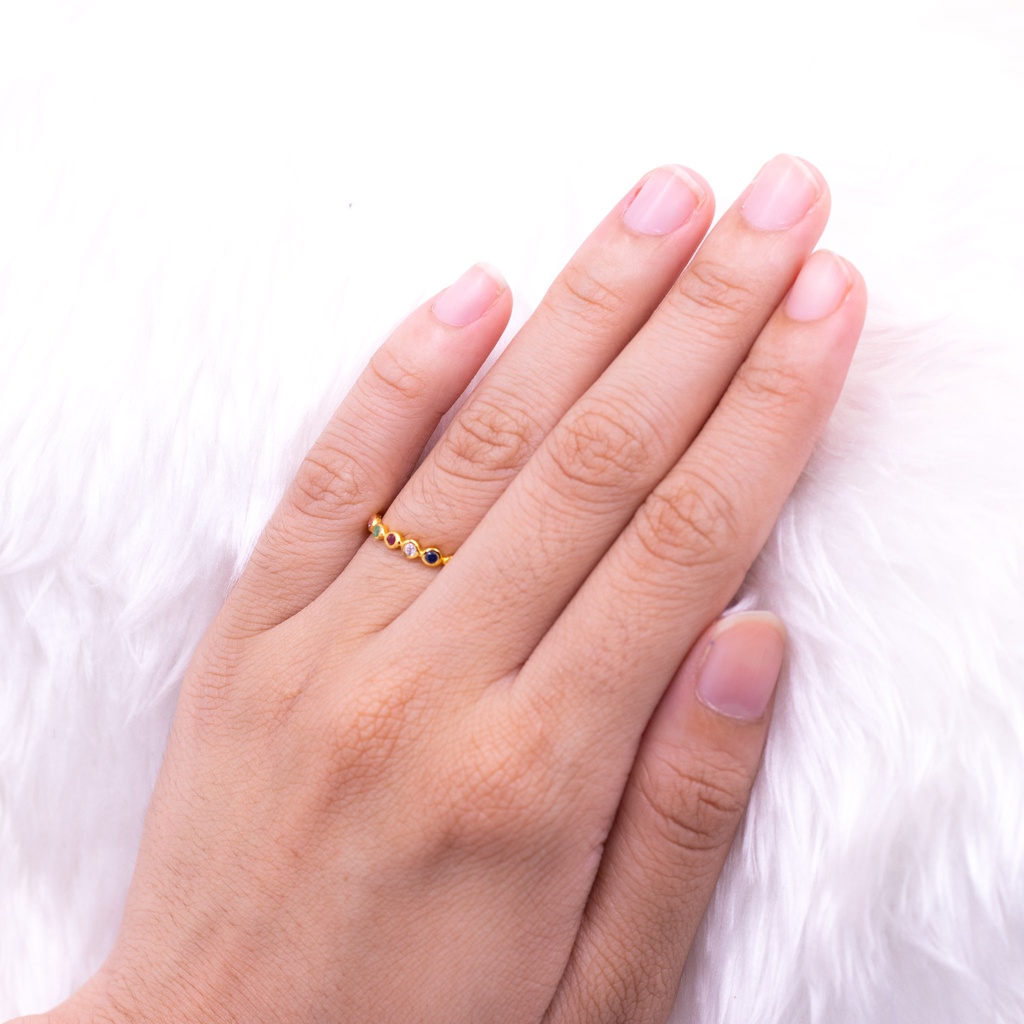 Happy Jewelry แหวนนพเก้าแท้ ตามตำรา ฝังหุ้ม ใส่เสริมดวงชะตา แหวนเพชร แหวนทอง ทองแท้ 37.5% PL151