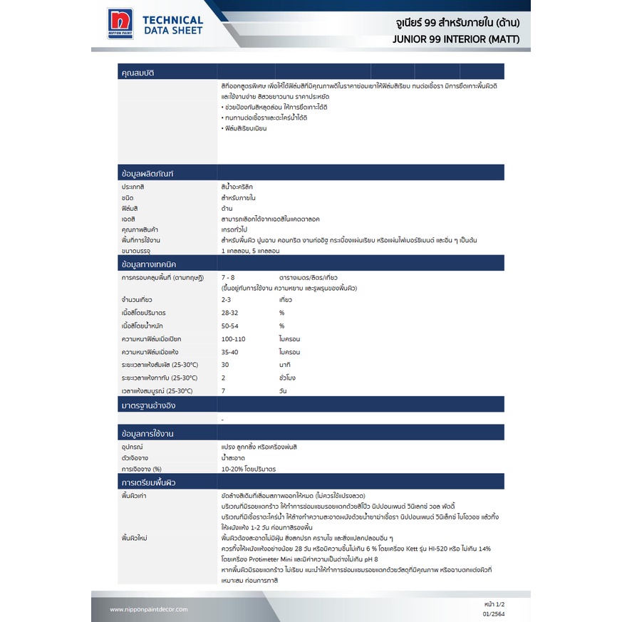 Nipponpaint Junior 99 Interior Matt สีน้ำ นิปปอน จูเนียร์ 99 ภายใน ด้าน ถัง ใหญ่ [17.5 ลิตร]