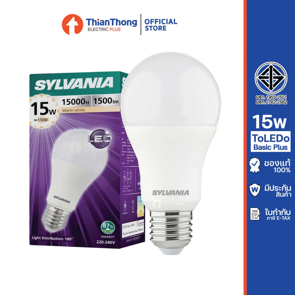 Sylvania หลอดไฟ ซิลวาเนีย LED Bulb ToLEDo Basic Plus 15W A60 E27 (มีให้เลือก 3 แสง)