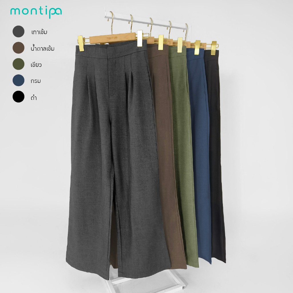 Montipa กางเกงทรงกระบอกใหญ่ ซิปตะขอหน้า แต่งจีบหน้า ผ้า Comfort 56PWC86