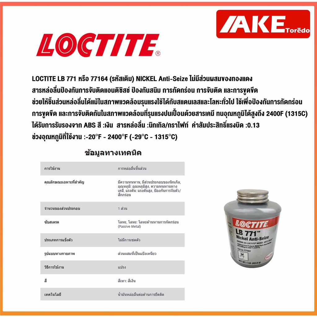 LOCTITE LB 771 ( 77164 ) nickel anti seize สารหล่อลื่นป้องกันการจับติด แอนติซิสช์ ป้องกันสนิมขนาด 1 LB. ( ล็อคไทท์ )